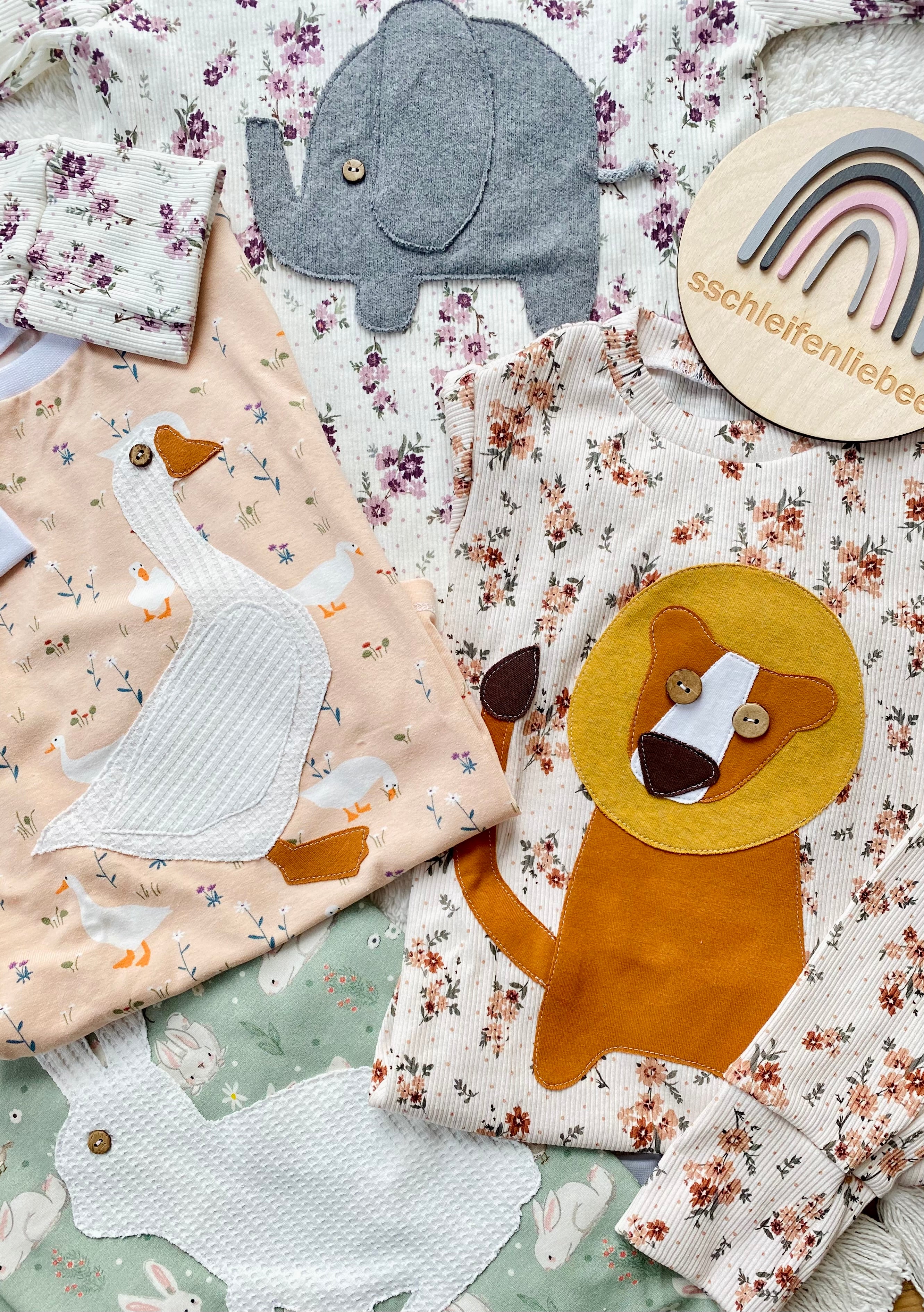 Entdecke besondere Stücke mit meinen handgezeichneten Applikationen. Hier arbeite ich ohne Strickmaschine, in liebevoller und aufwändiger Handarbeit für dein Kind!