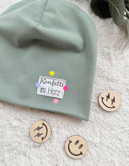 Beanie | Used-Look Label „Konfetti im Herz“