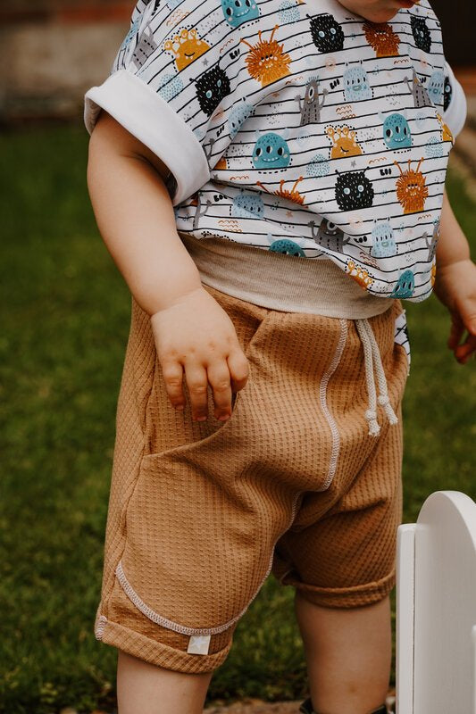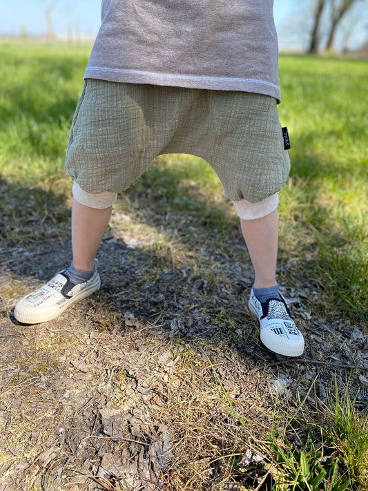 Der Loose Style überzeugt mit einer lockeren Schnittführung, die auf das Mitwachsen ausgelegt ist, und passt oft noch im nächsten Sommer! Die weichen, mitwachsenden Bauch- und Beinbündchen dienen zur Größenregulierung und werden am Anfang umgeschlagen getragen. Ein einfaches Hineinschlüpfen in die Shorts fördert das selbstständige Anziehen schon bei den Kleinsten . Keine Knöpfe, keine Reißverschlüsse. Die Shorts kombinieren Komfort, Style und Nachhaltigkeit!