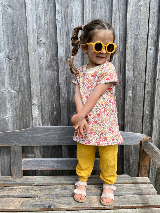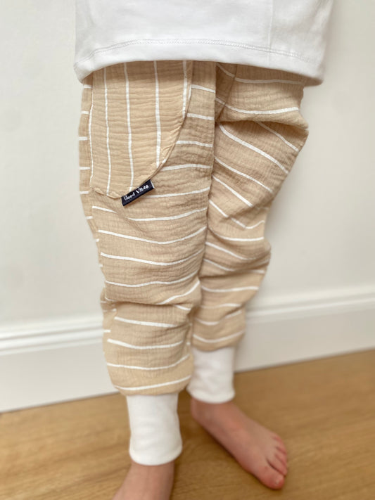 Entdecke meine Musselinhosen, mit denen dein Kind Komfort und Design durch 100 % Baumwolle in vollen Zügen genießen kann. Kindergerechte Motive und eine raffinierte Schnittführung, auf das Mitwachsen ausgelegt, machen die Hose zu einem Lieblingsteil in der Sommergarderobe. Die Hose hat ein gerades und weit geschnittenes Bein, ohne pumpig zu wirken! Sie überzeugt mit einem hohen Schritt, perfekt für Kinder, die den tiefen Schritt nicht mögen. Musselin besitzt wertvolle Eigenschaften. Der Stoff ist strapazierfähig, leicht und atmungsaktiv. Der gewebte Stoff lässt die Luft zirkulieren und senkt somit das Überhitzungsrisiko! Saugstark und zudem schnelltrocknend sind die Hosen vielseitig einsetzbar am Strand, im Urlaub oder zu Hause im ganz normalen Alltag.