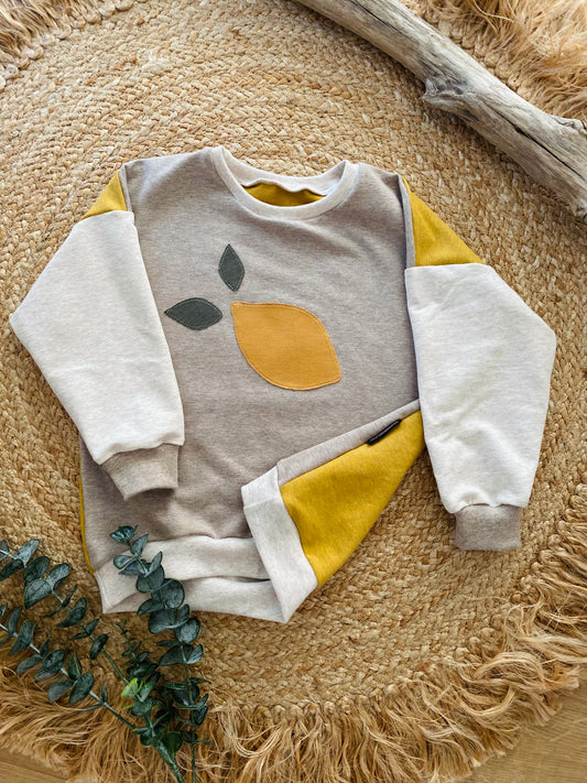 Oversized Sweater | Applikation Zitrone | Color Blocking