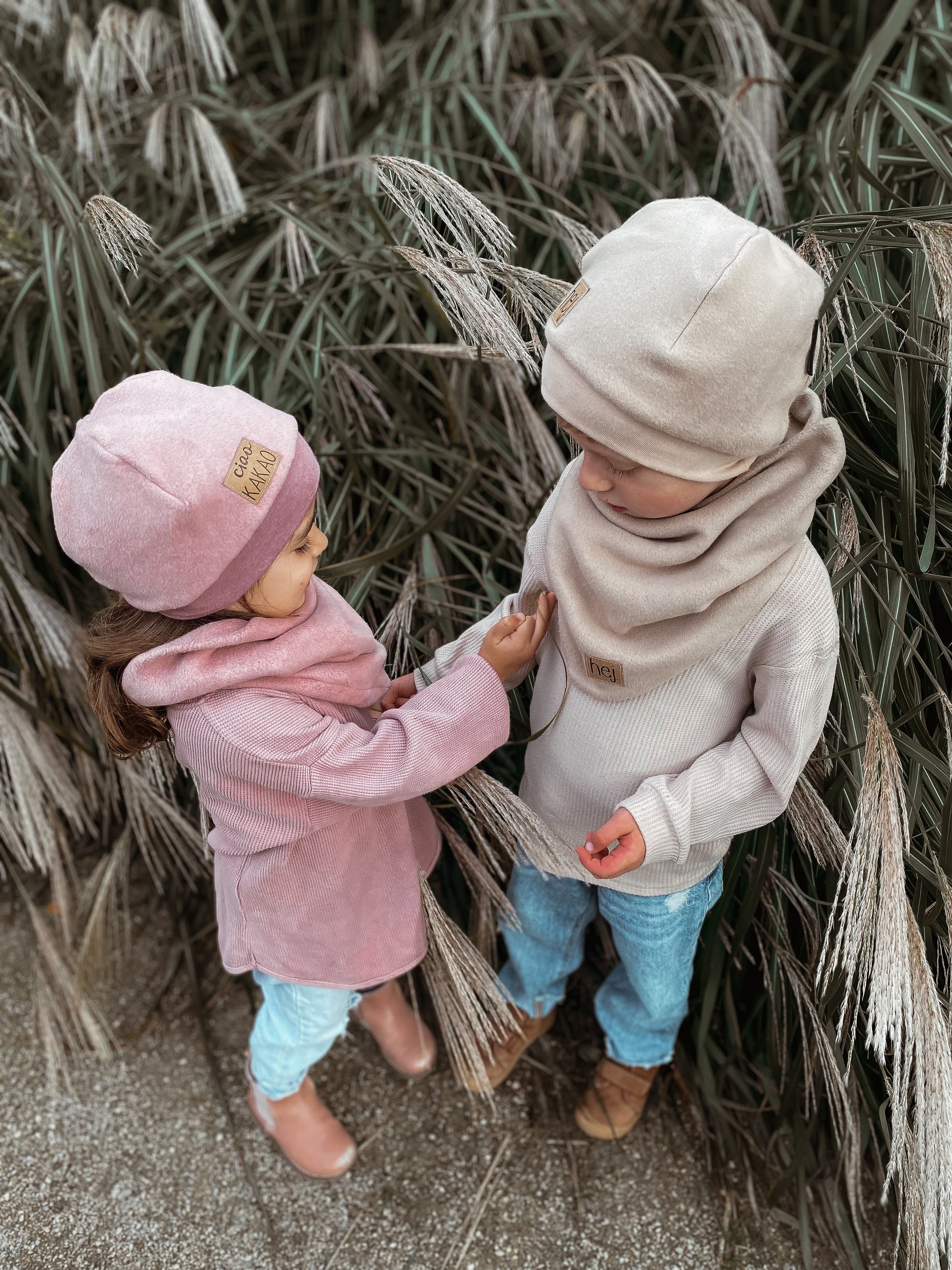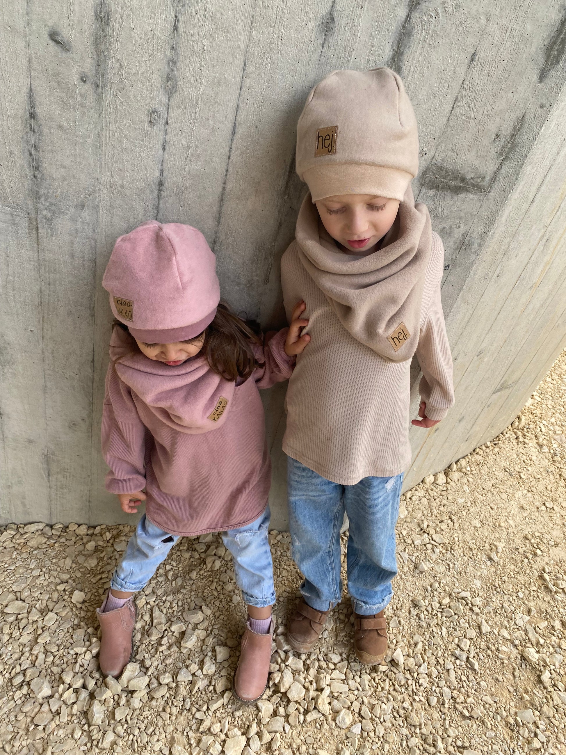 Baumwollfleece ist saugfähig, atmungsaktiv und pflegeleicht. Durch die hautfreundlichen Eigenschaften und die hochwertige Qualität ist er ideal für Babys, Allergiker und Menschen mit empfindlicher Haut geeignet. Für alle Kids die einen Hochgeschlossenen Reißverschluss beim tragen der Jacke nicht mögen, schafft der Loop eine perfekte Brücke vor Kälte.