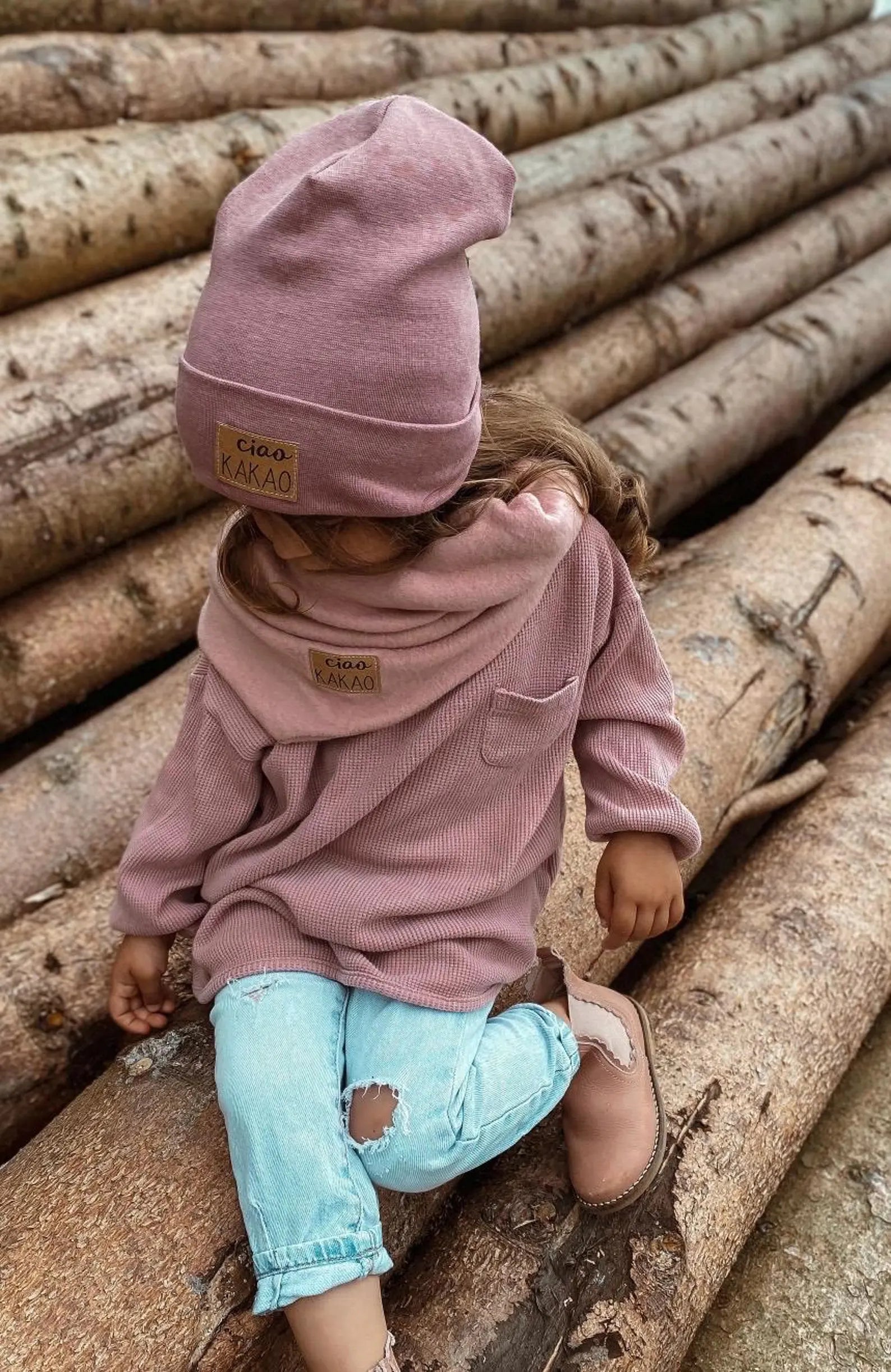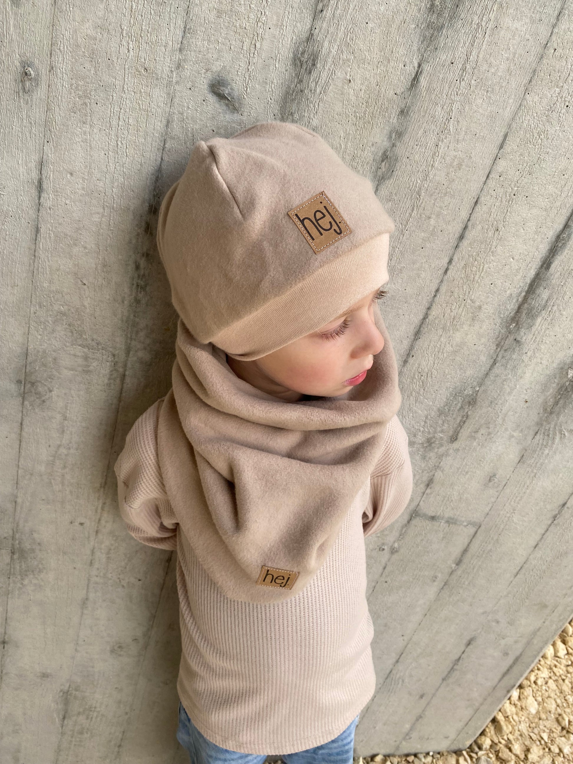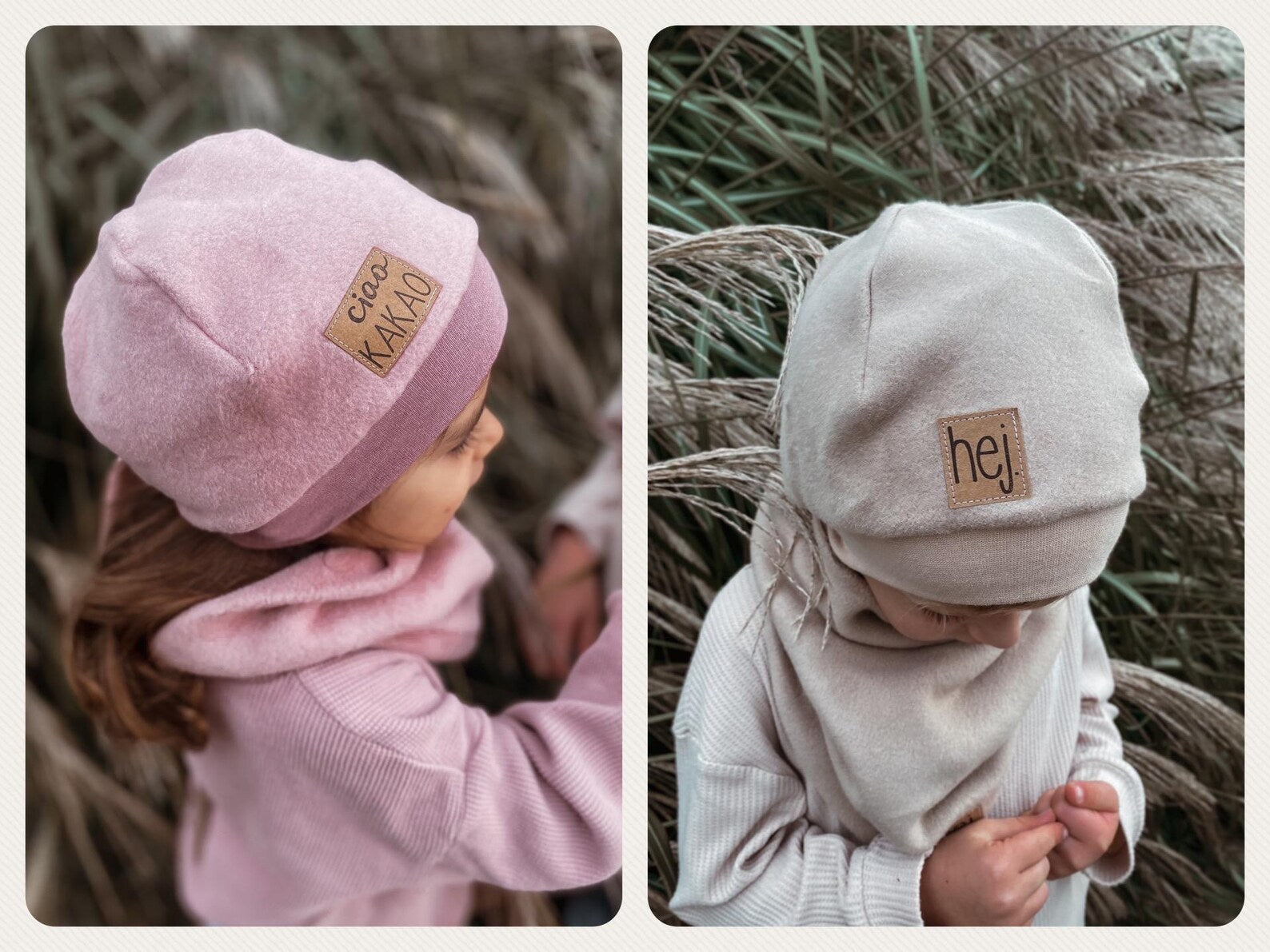 Dein Design | Wintermütze Baumwollfleece Kuschelloop | Used-Look & Leder Label | Dreieckloop