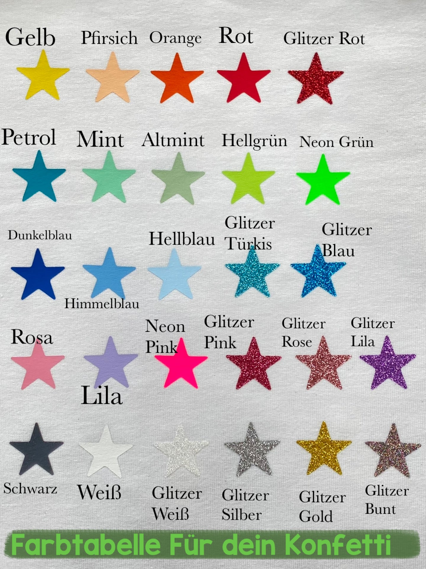 Die gewählten Farben für dein Konfetti verteile ich auf Punkte und Schneeflocken in unterschiedlichen Größen.