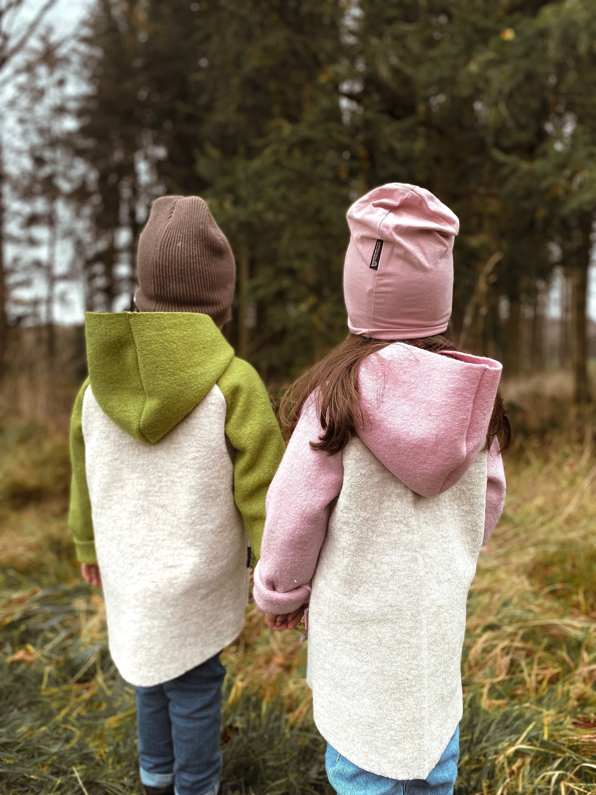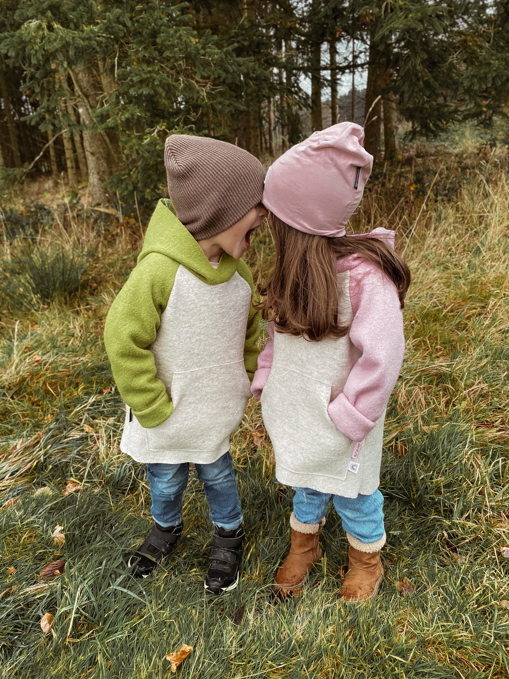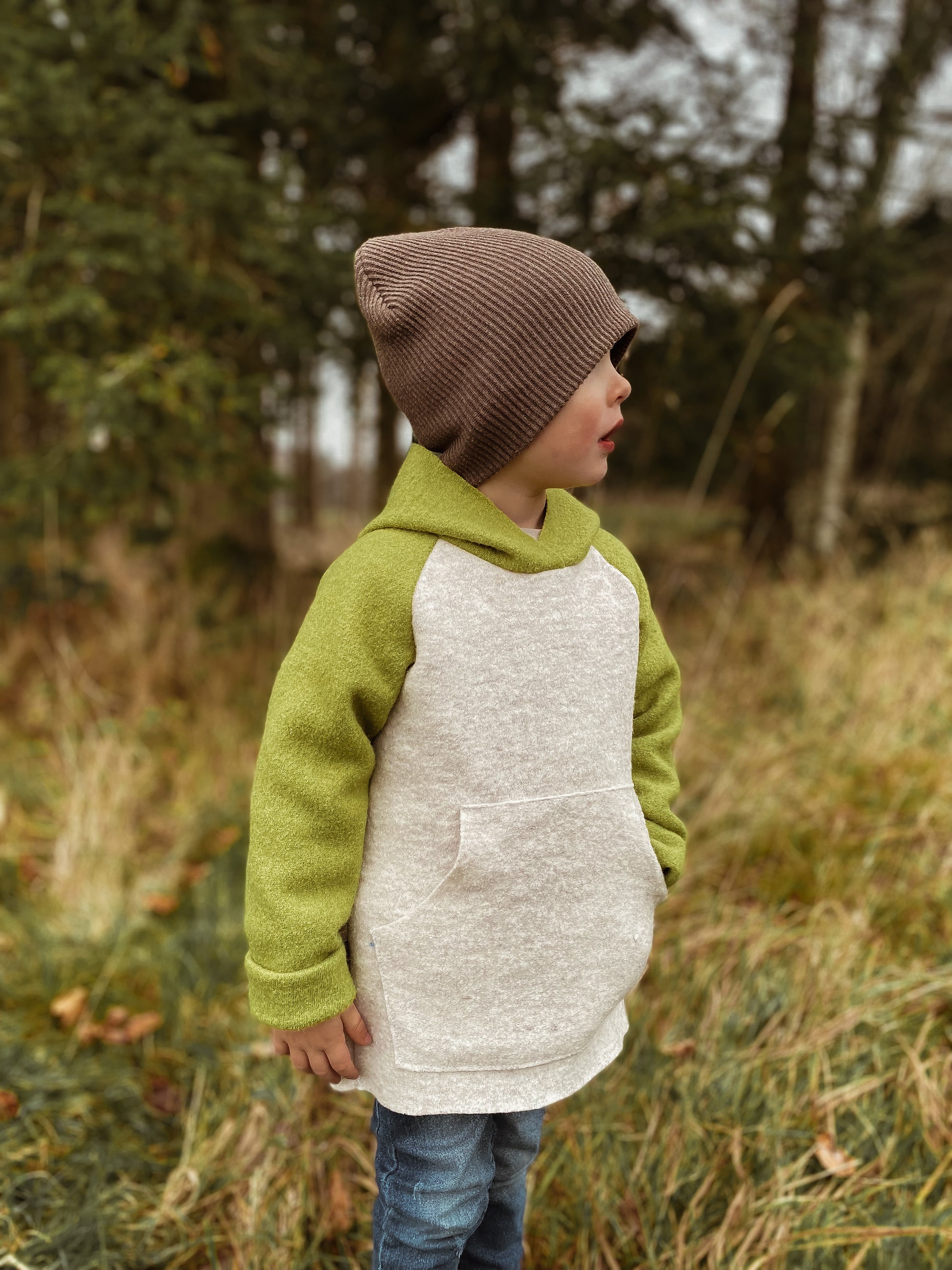Der Wollwalk Hoodie hat Ärmel zum Umschlagen und kann je nach Bedarf mit Futter in der Kapuze Bestellt werden - Bitte Anfragen. Weitere Bereiche werden nicht gefüttert.