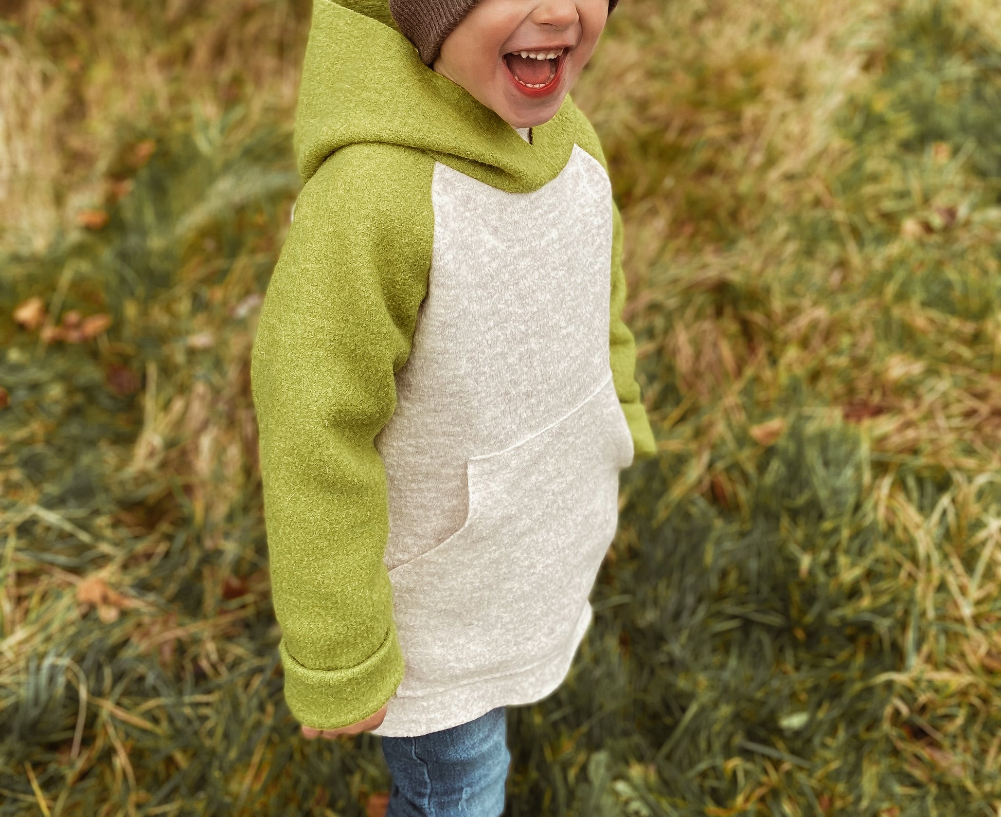 Bestimme die Farben für Ärmel und Kapuze einfach selbst! Wähle deine Statementfähnchen an der Bauchtasche oder lass es einfach weg – mach es so, wie es dir gefällt!