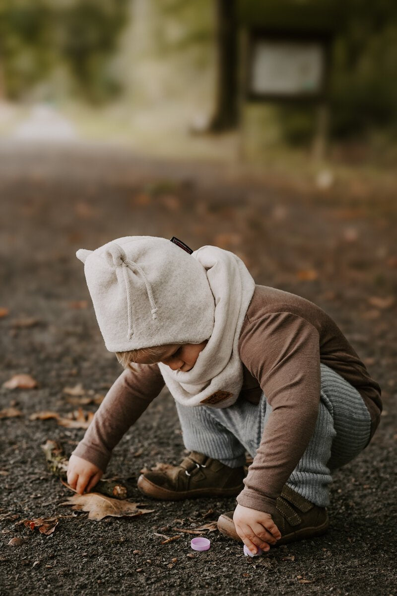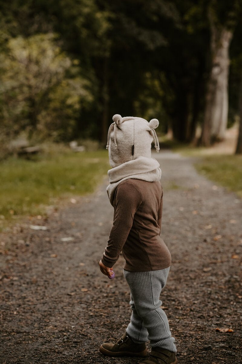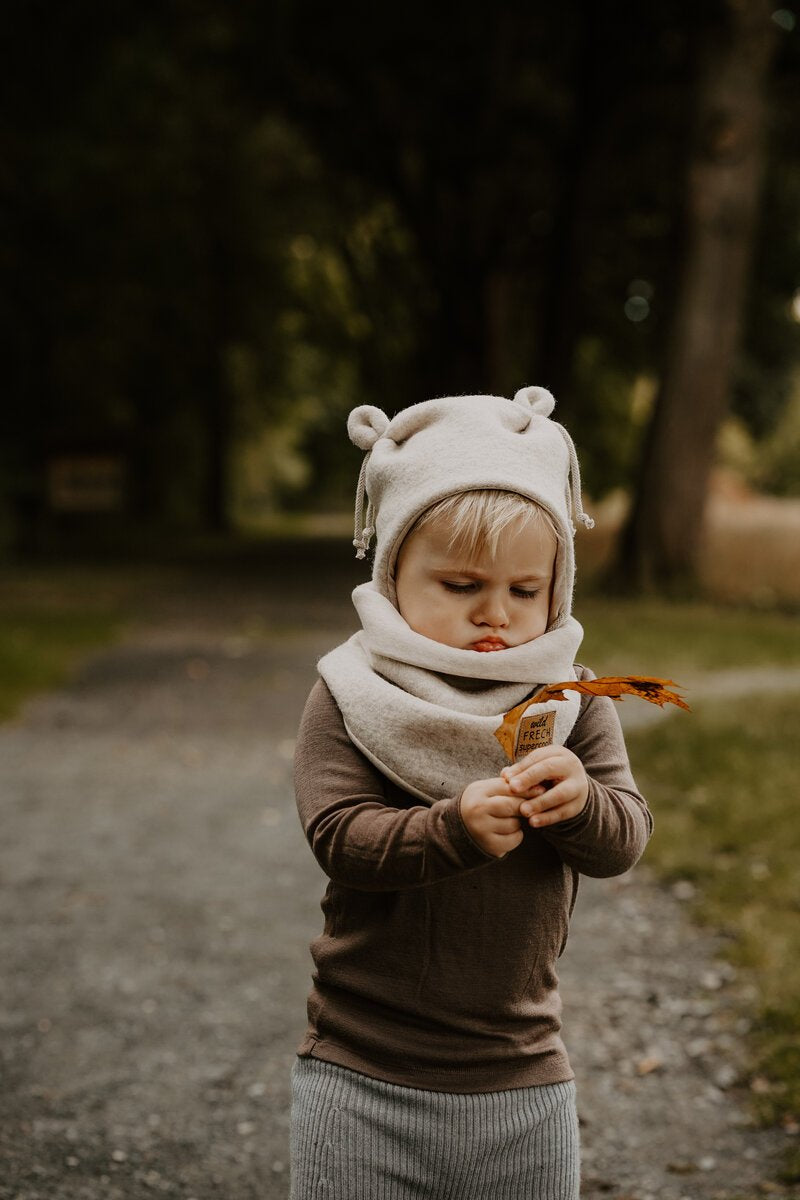 Die Bärchenmütze liegt am Kopf an, bedeckt die Ohren und reicht über weit über das Gesicht. Sie hat einen perfekten Sitz im Nacken. Herrlich für Herbst und Winter bis ins späte Frühjahr: flauschig und kuschelweich aus 100 % Schurwolle, winddicht und wasserabweisend mit einem Futter aus Baumwolljersey, kein Kratzen oder Kopfjucken!