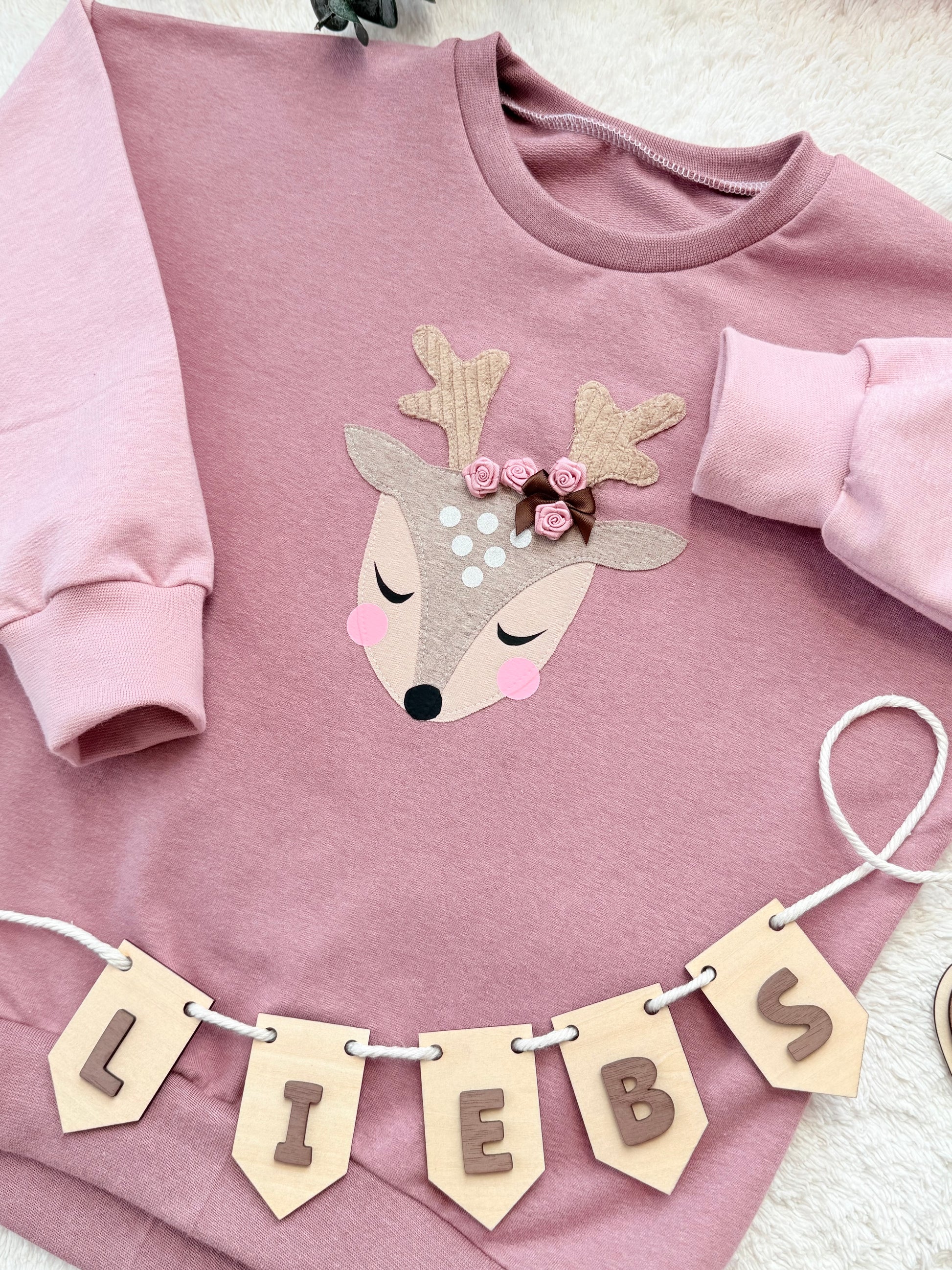 Der Rehkitz-Oversized-Sweater ist ein absolutes Lieblingsstück. Er begeistert deine Maus ganz bestimmt! Wunderschön und detailliert lässt das Rehkitz Mädchenherzen höherschlagen. Für alle, die es lässig, bequem und schick mögen, eine perfekte Wahl.