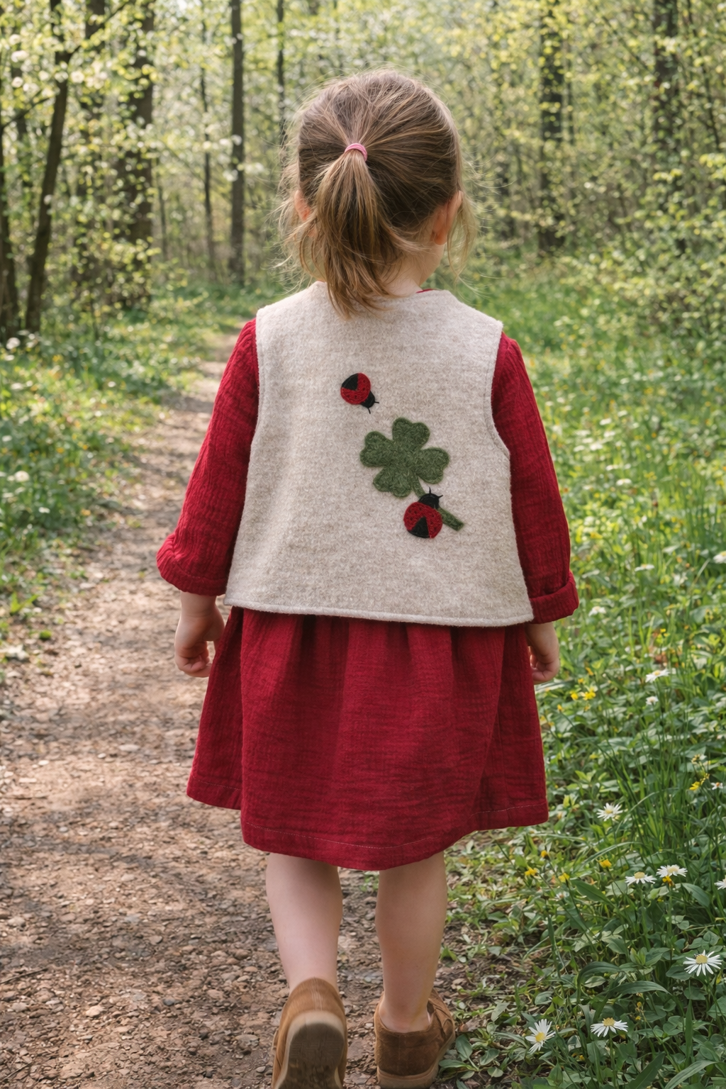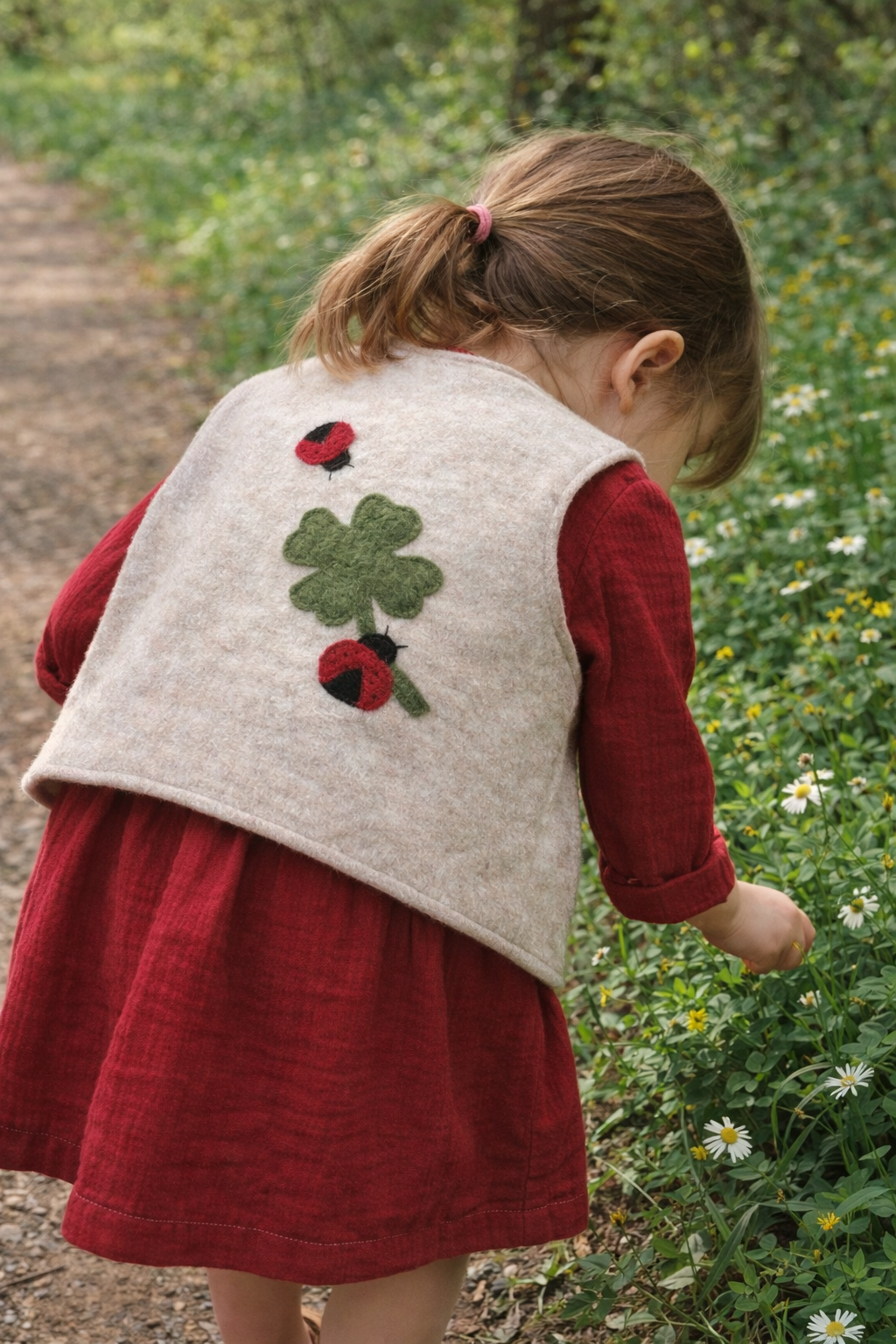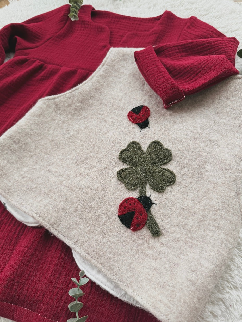 Weste | Wollwalk „Glücksbringer“ Kleeblatt Marienkäfer