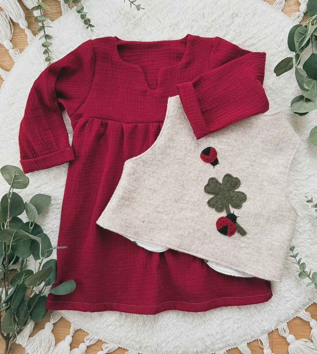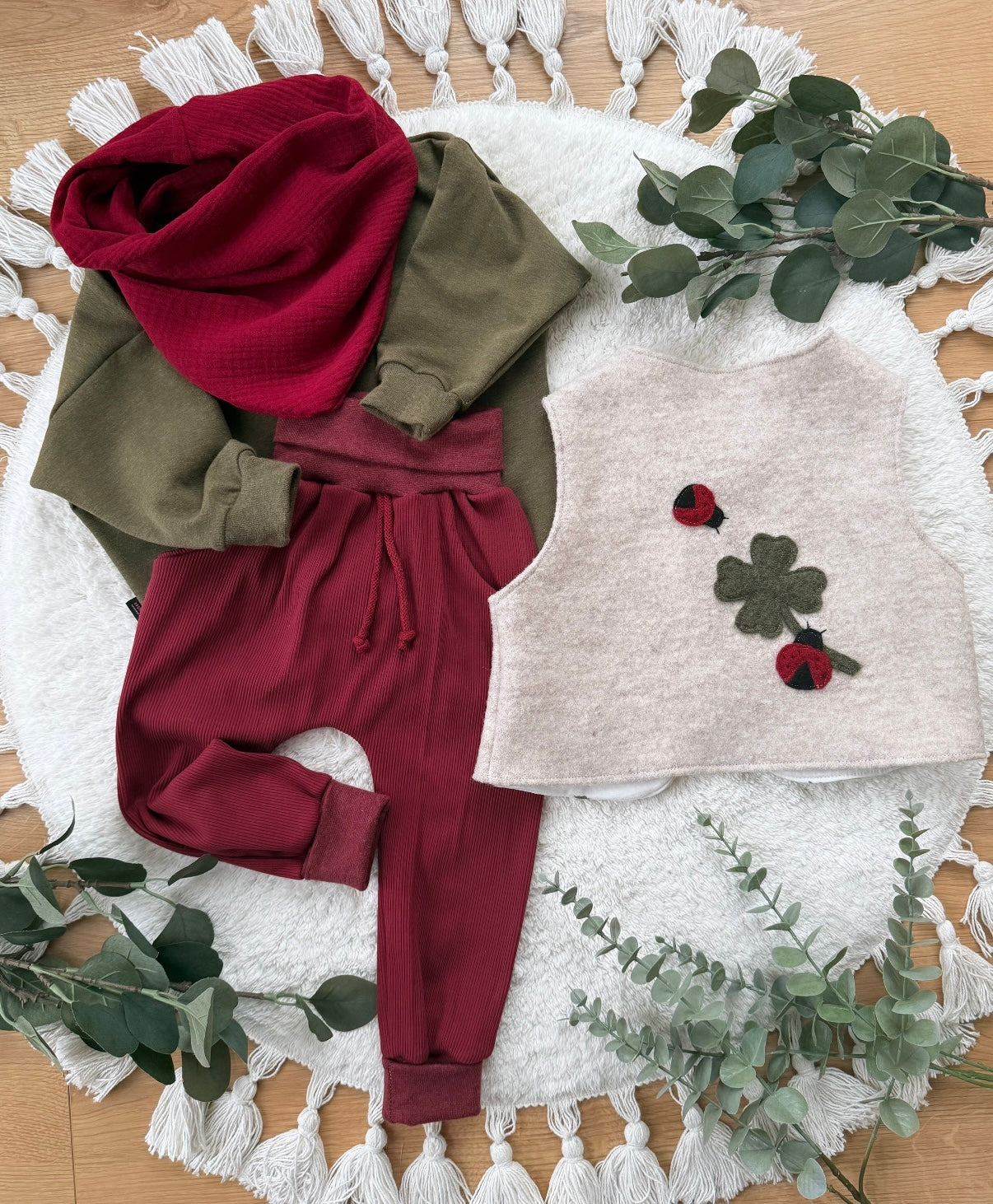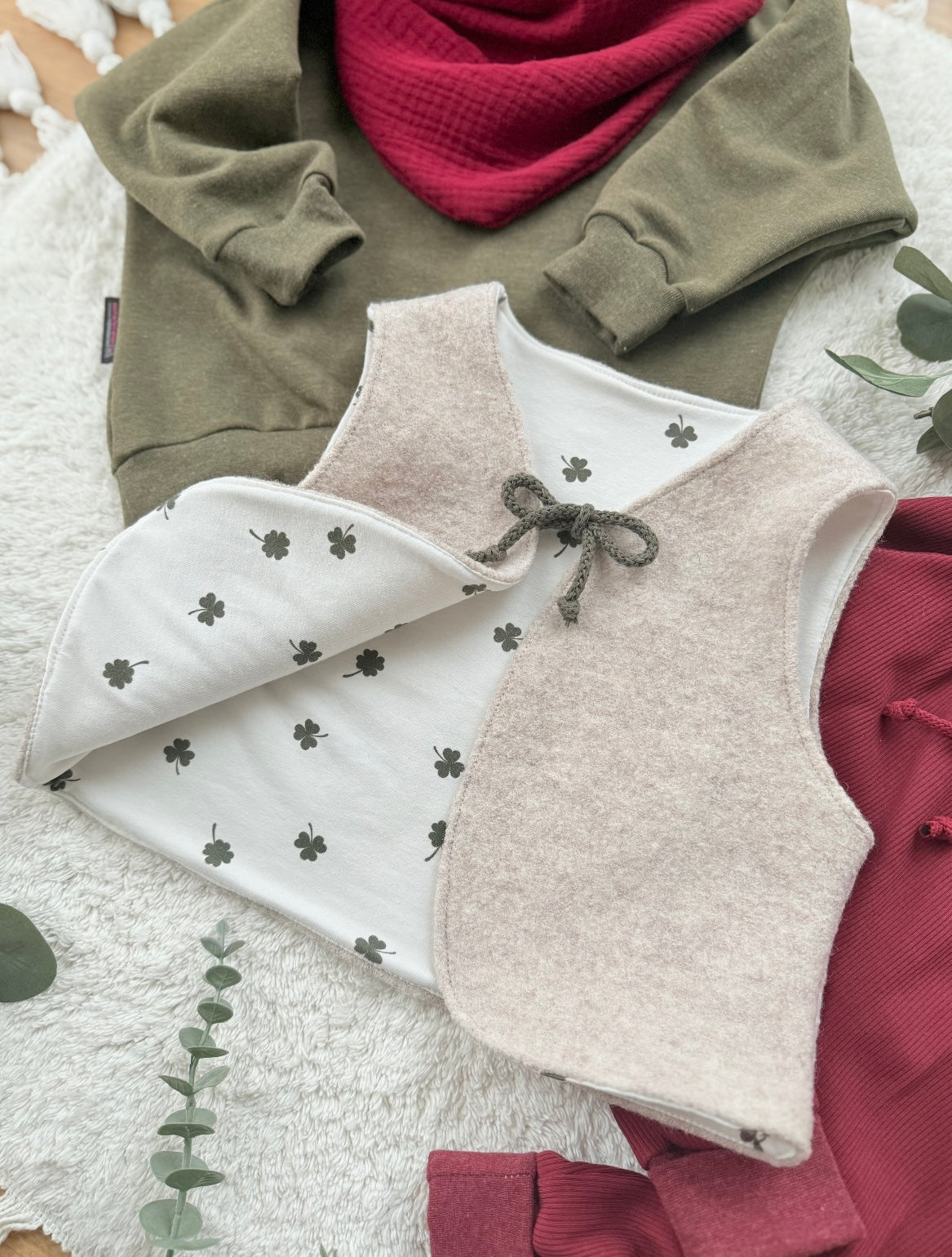 Weste | Wollwalk „Glücksbringer“ Kleeblatt Marienkäfer