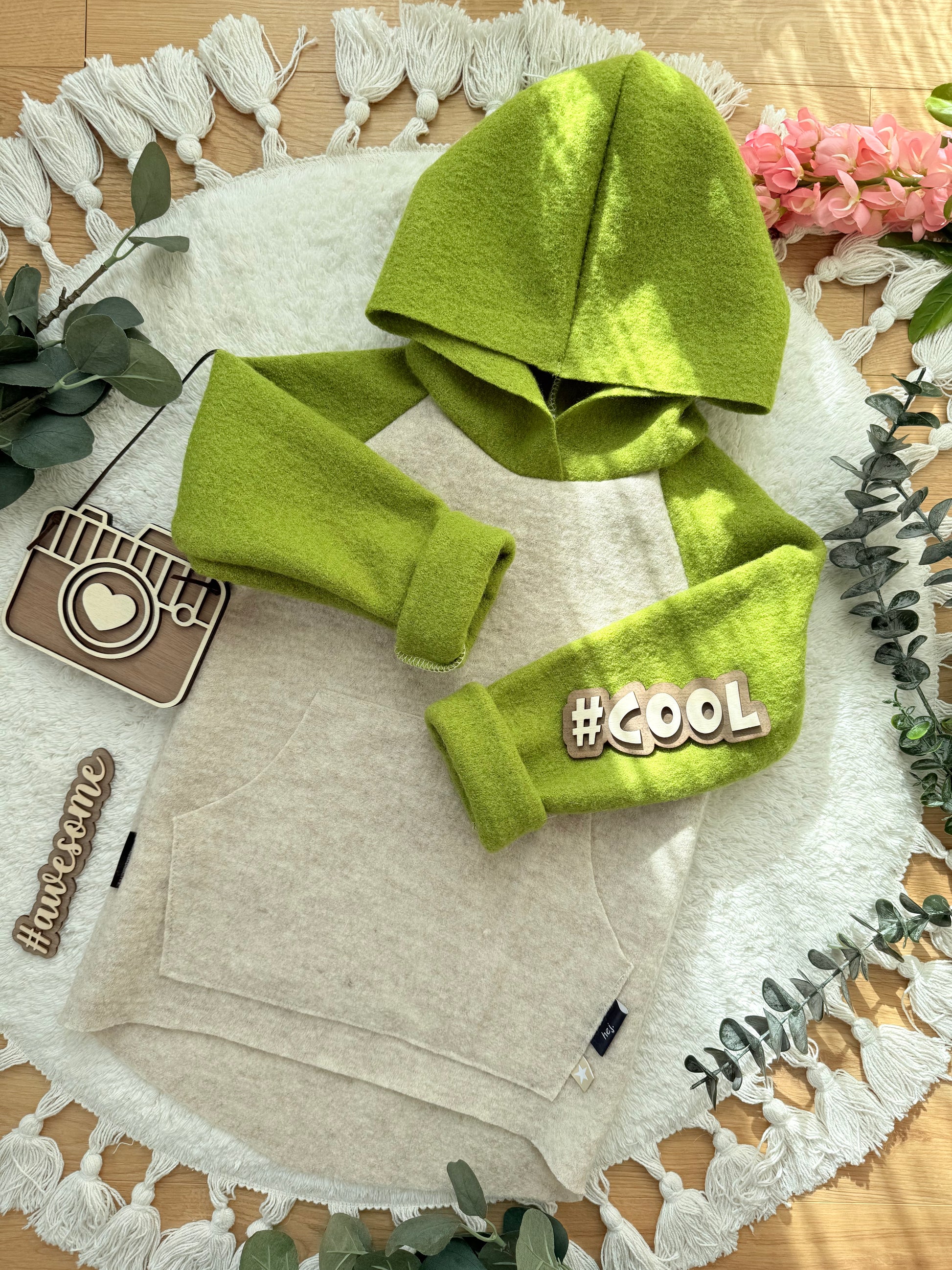 Bestimme die Farben für Ärmel und Kapuze einfach selbst! Wähle deine Statementfähnchen an der Bauchtasche oder lass es einfach weg – mach es so, wie es dir gefällt!
